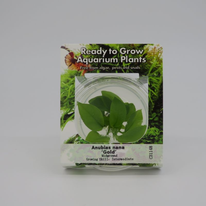 This is another variety of the Dwarf Spear Leaf called ‘Gold’. It was discovered in cultivation at a nursery in Taiwan. After the initial isolation period it took several years to establish a stable stock. With leaves ranging in color from light green to yellow-gold, it is significantly different from the other, darker green types of Anubias. The lighting should not be too weak, as this makes the leaves turn darker.