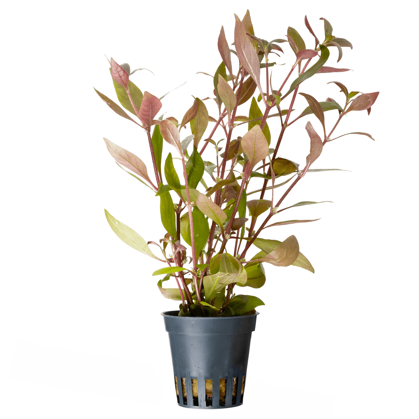 Alternanthera reineckii, commonly known as Parrot Leaf, is a striking aquarium plant valued for its vibrant red leaves. This stem plant, native to South America, features lanceolate leaves with a distinctive waviness along the edges. The upper leaf surface displays shades ranging from olive green to reddish-brown, while the underside varies from light brown to reddish-brown. Under optimal conditions, the plant can reach heights of up to 50 cm, making it suitable for mid to background placement in aquariums. Alternanthera reineckii thrives in the slow-flowing waters of the Amazon and adapts well to various habitats. Bright lighting, nutrient-rich substrates, and occasional CO₂ additions are beneficial for healthy growth. Regular fertilization with iron and micronutrients is also recommended. The plant flourishes in water temperatures between 23 and 30°C and a pH level of 6.2 to 7.1. Pruning encourages bushy growth. In Dutch aquascaping layouts, Alternanthera reineckii is often used to create vibrant contrasts with green plants and a dynamic underwater aesthetic.
